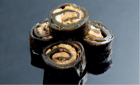鹿児島県産黒豚を北海道産昆布で巻き上げ、旨みを重ね合わせた贅沢な昆布巻です。